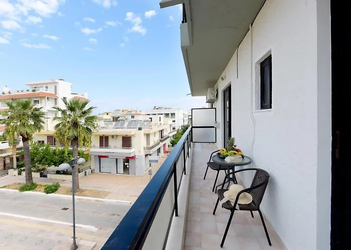 Umístěný 700 metrů od Muzeum mineralogie a paleontologie Stamatiadis ve městě Ialysos, apartmán Apartmán Palm Square Appart vítá hosty rovnou střechou k opalování a sluneční terasou. Pláž Elli lze zastihnout za 15 minut jízdy, zatímco letiště Mezinarodni letiste Rhodos je vzdálené 10 km.